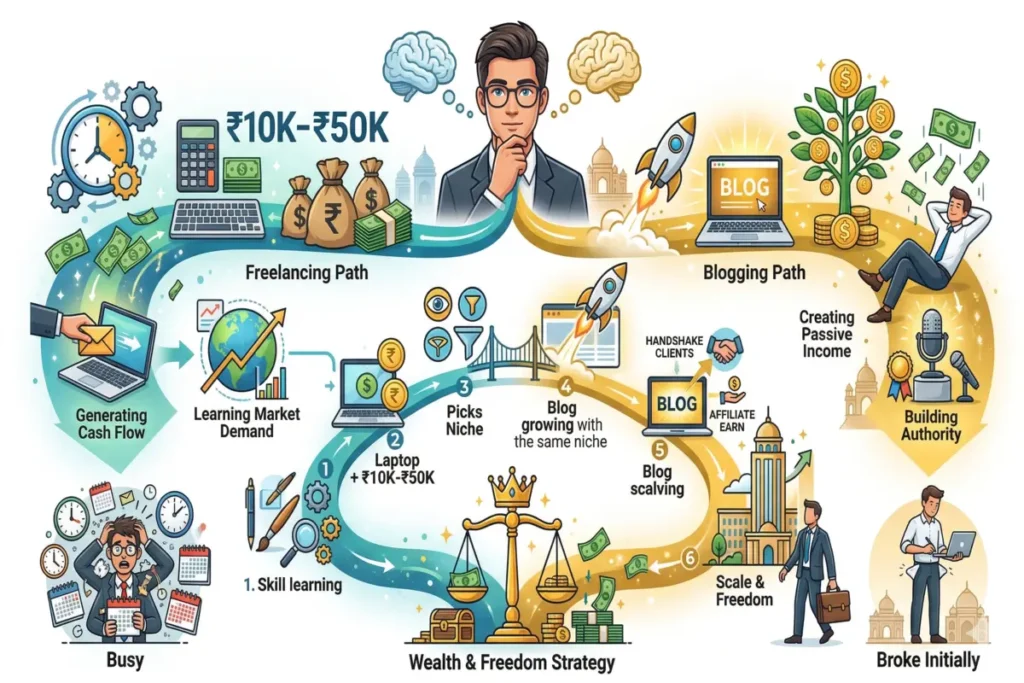 Freelancing alone will make you busy. Blogging alone will make you broke (initially). Combining both makes you rich. This is based on real execution, not theory.